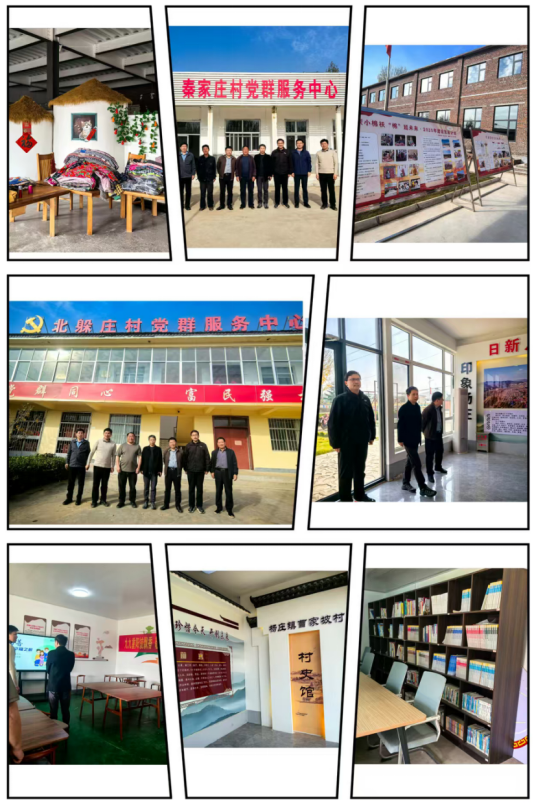 在学校派驻第一书记王冲、熊德浩和扈光民的陪同下,全体人员前往秦家庄村、北躲庄村、吴家楼子村开展实地调研,走访察看村容村貌,详细了解乡风民情,并就加强乡村文化建设、提升文化服务效能等进行了深入交流。